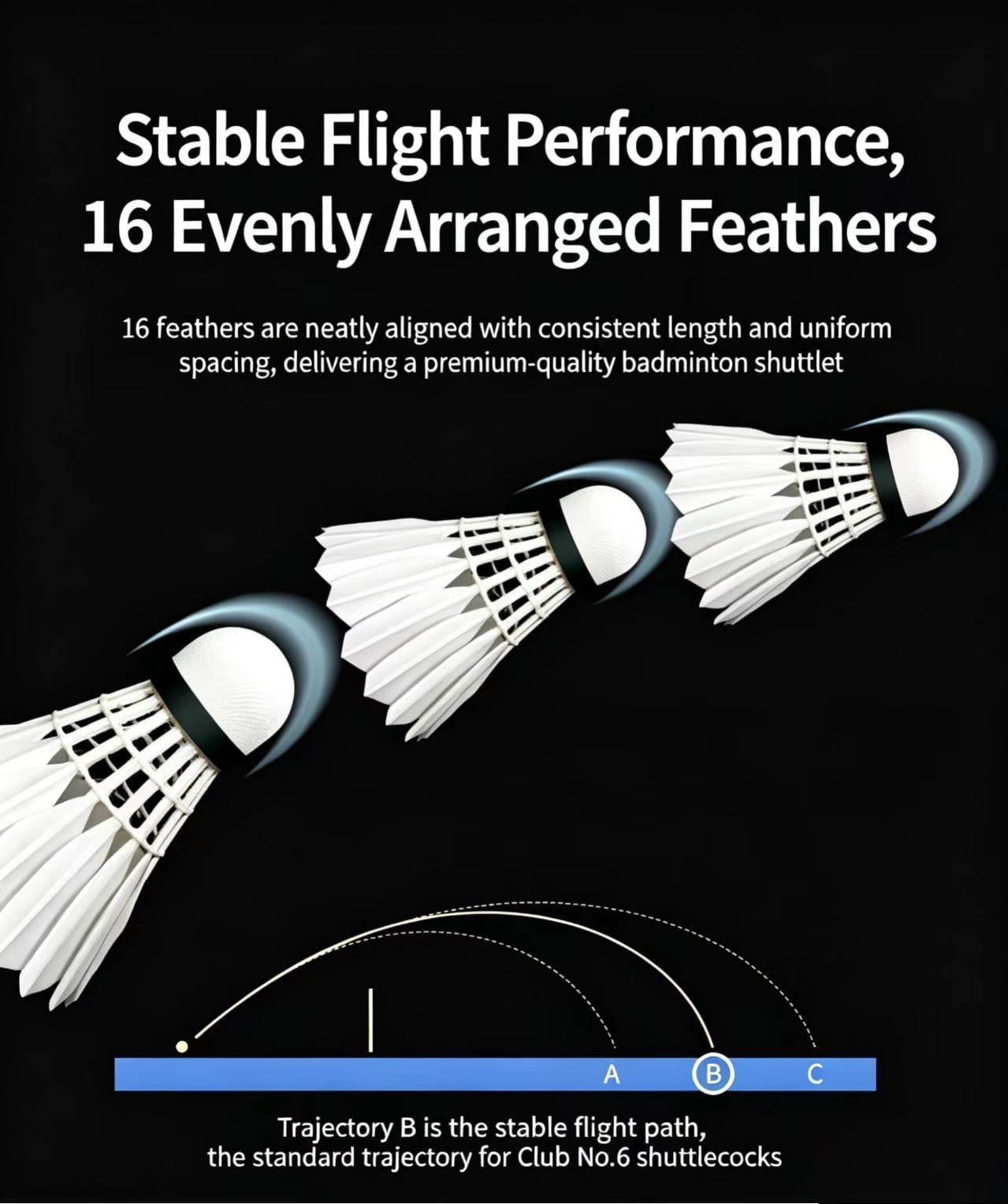 a. Feather Shuttlecocks: Available in 76, 77, and 78 speeds, with varying flight characteristics and speeds to match player skill levels.