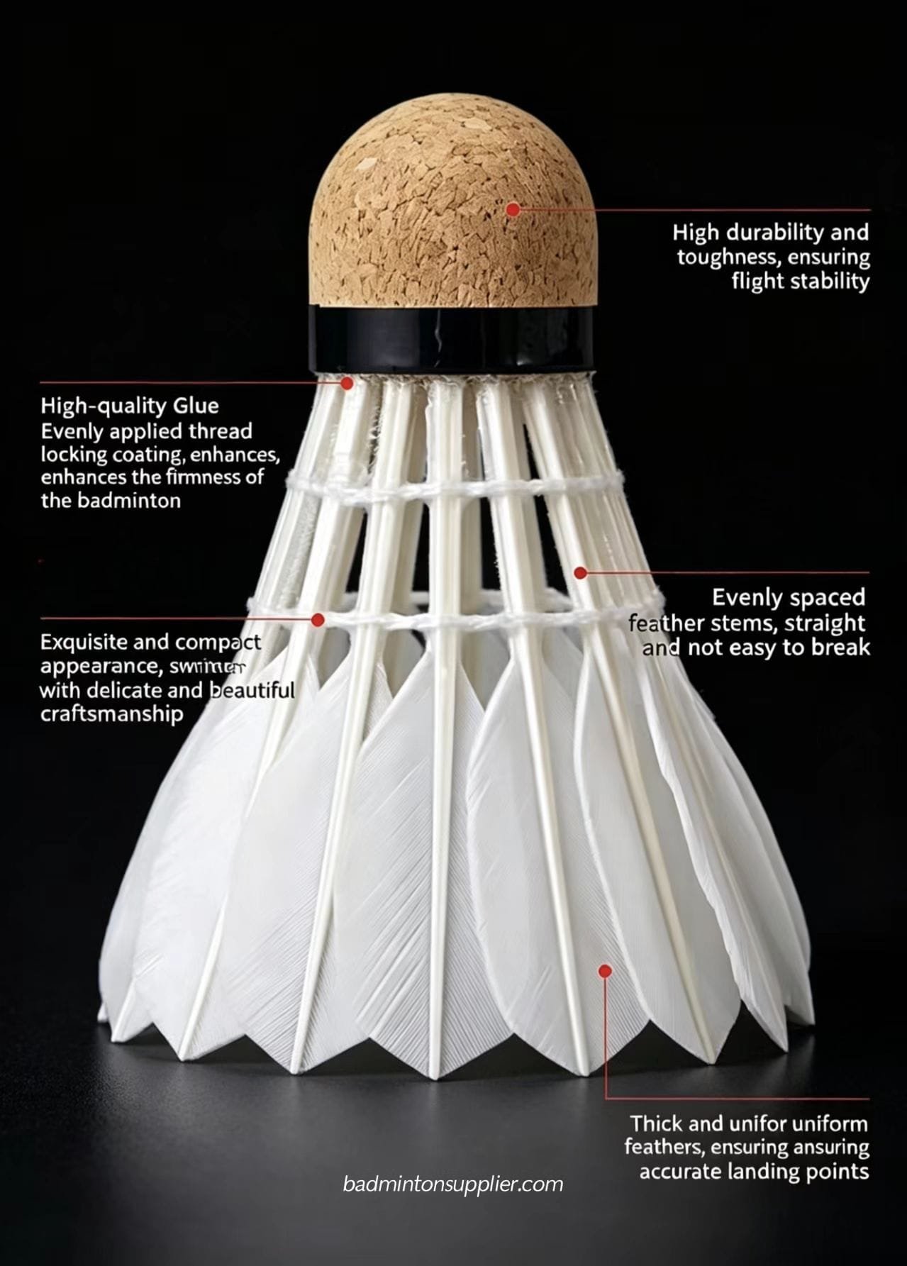 Discover the perfect Chinese customized badminton feather shuttlecocks for sporting brands at BadmintonSupplier.com. With 16 years of experience, we are a leading manufacturer and supplier of high-quality BWF-certified badminton products. Explore our range of feathers and synthetic shuttlecocks, designed for optimal performance and durability. Find the right shuttlecock for your playing style and elevate your game today.